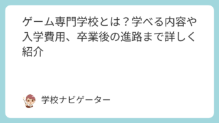 ゲームの専門学校について🎮ゲーム専門学校とは?📚学べる内容や入学費用、卒業後の進路まで詳しく紹介 ゲームが好きで、「将来はゲーム業界で働きたい」と考える人が増えていますね。家庭用ゲーム機やスマホゲーム、VRやeスポーツなど、ゲームの市場はどんどん広がっており、開発の仕事に憧れるのも納得です。しかし、ゲームを作るためにはプログラミングやデ... 2025.02.09ゲームの専門学校について